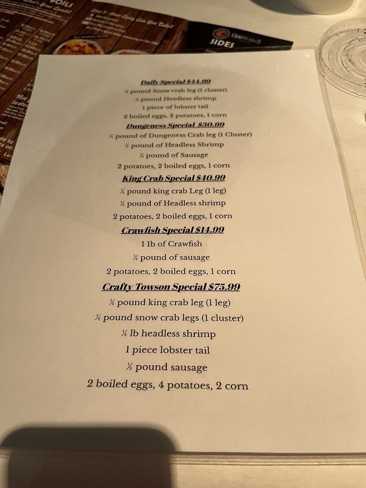Welcome to Crafty Crab, where Cajun and Creole flavors come to life in a delightful seafood experience! Located in Towson, MD, this vibrant eatery offers an extensive menu featuring mouthwatering seafood boils, savory sausages, and fresh salads.
